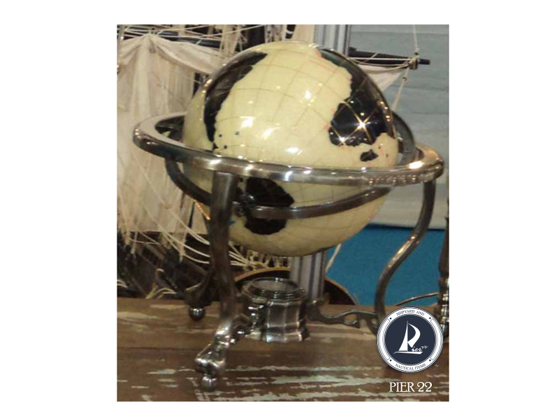 Este incrível Globo Mar Pó de Madrepérola Resinado Marfim possui 22 cm, construída com resina na cor preta, sua base é composta por estanho, possui bússola é perfeito nos detalhes.